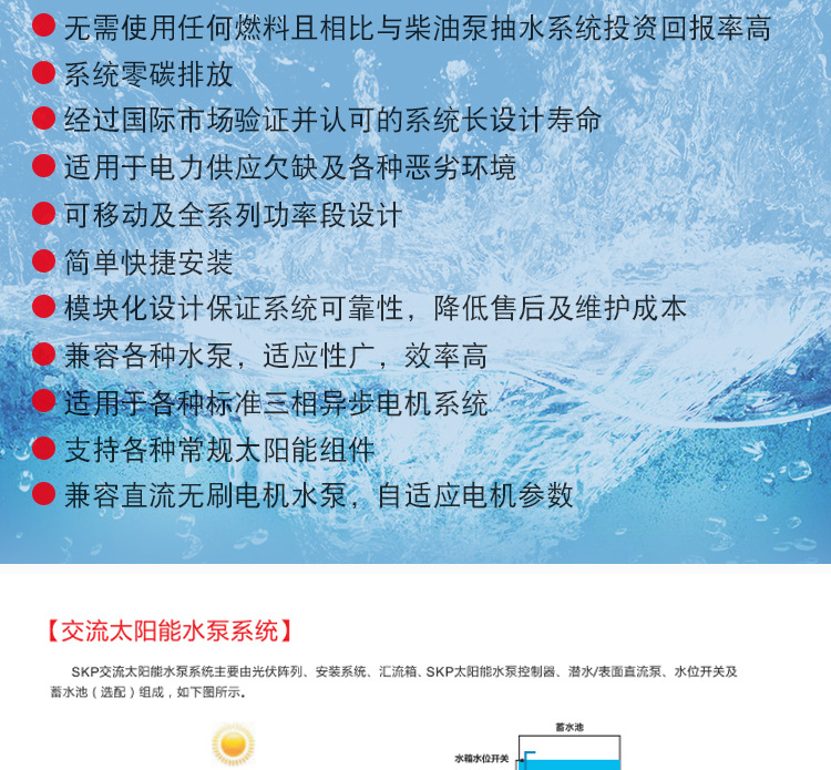 應(yīng)用行業(yè):廣泛應(yīng)用于陽(yáng)光充足、市電短缺的地區(qū),可以解決農(nóng)場(chǎng)灌溉、畜牧養(yǎng)殖、生產(chǎn)生活的用水問(wèn)題