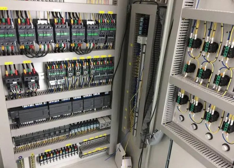 (4)電氣接線(xiàn)圖一概選用細(xì)線(xiàn)框繪圖。布線(xiàn)辦法分板前布線(xiàn)及板后布線(xiàn)二種,普通選用板前布線(xiàn),針對(duì)簡(jiǎn)易電氣控制系統(tǒng),電器產(chǎn)品元件總數(shù)較少,接線(xiàn)關(guān)聯(lián)又不冗雜的,可立刻繪制元件間的聯(lián)線(xiàn);針對(duì)冗雜構(gòu)件,電器產(chǎn)品元件總數(shù)多,接線(xiàn)較冗雜的情況,普通是選用線(xiàn)槽,要是在各電器產(chǎn)品元件上標(biāo)明接線(xiàn)號(hào),無(wú)須繪制各元件間連線(xiàn)。