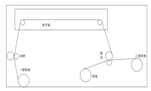 該復合機是加工塑料薄膜(如薄膜印刷)的重要設(shè)備,如下所示。在該系統(tǒng)中,薄膜卷通過退繞架退繞,然后通過涂膠槽涂膠,進入復合牽引輥后在復合控制箱中加熱,然后與另一層薄膜復合,最后由卷繞電機卷繞。